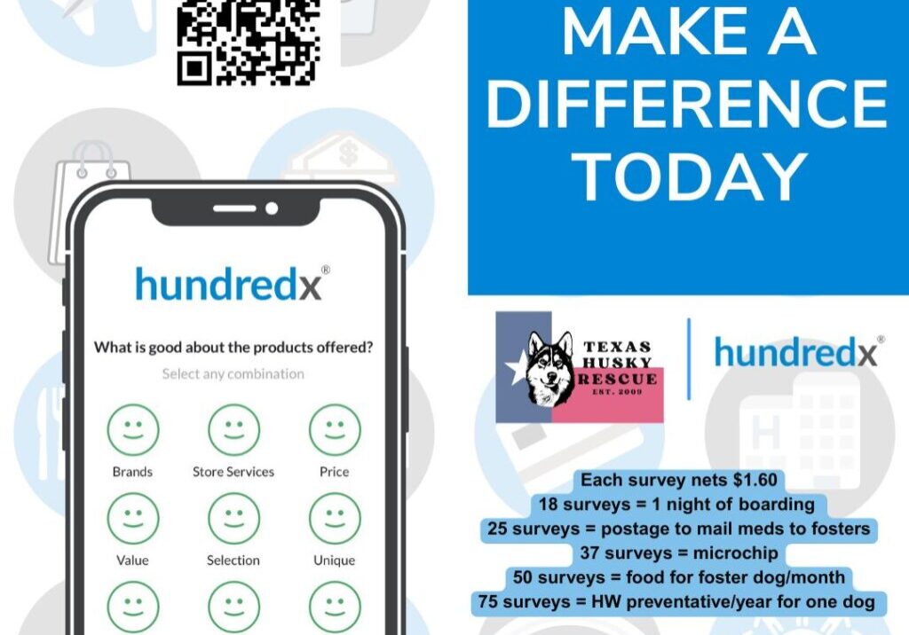 Last year we completed 3,560 surveys for $5,696, which is amazing. We have a chance to make $10,000 this year, and with our experience, we should be able to smash that goal! From Friday, 3/27 – Tuesday, 5/5 (our 17th anniversary!) Texas Husky Rescue is participating in HundredX Causes, which donates $1.60 to our Rescue for […]